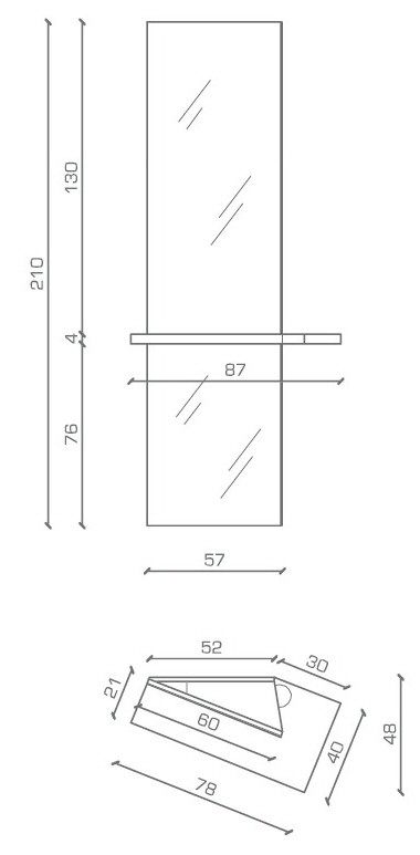 Struttura in bilaminato, specchio tutta altezza; mobile di