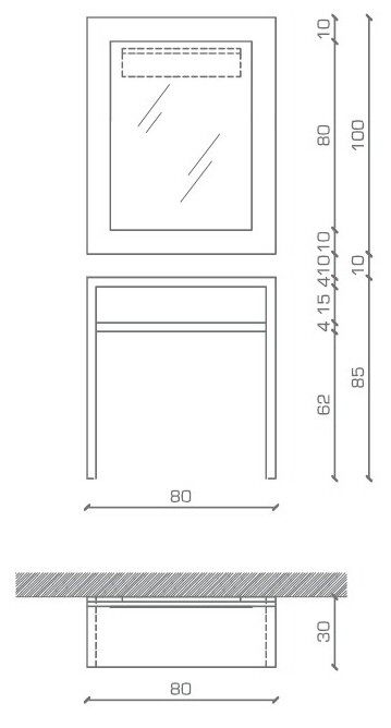 Struttura a “C” in bilaminato, ripiano fisso sotto il piano
