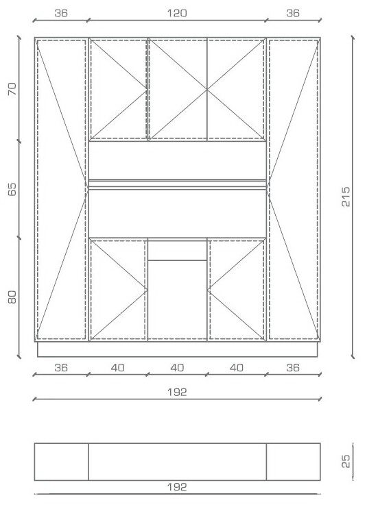 Struttura in bilaminato, 2 colonne con mensole sui lati, mobile centrale con ante, pomolo cromato, anta per getta-salviette e nicchia centrale L 120 cm con ripiano