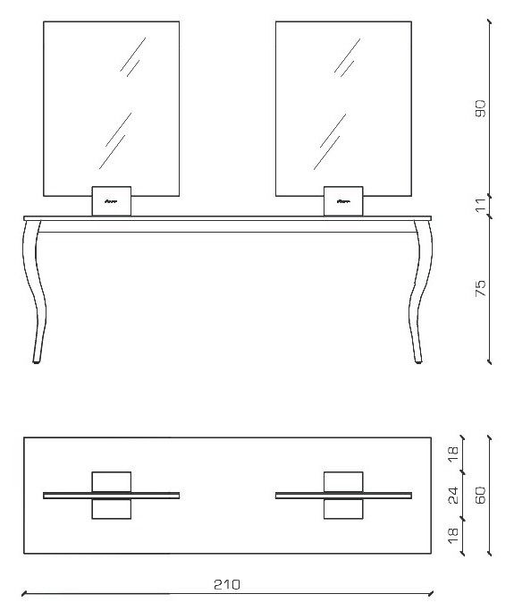 Table à 4 postes en métal finition verni, 4 miroirs fixé sur le plateau