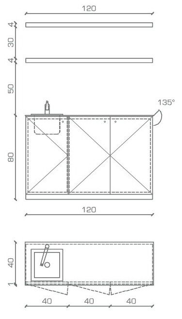 Structure en mélaminè sans portes, étagère réglable, evier céramique