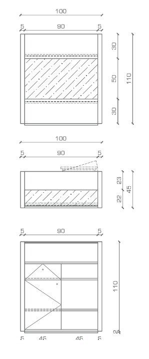 Structure en mélaminé, 2 portes, intérieur étagére réglable, 2 tiroirs,